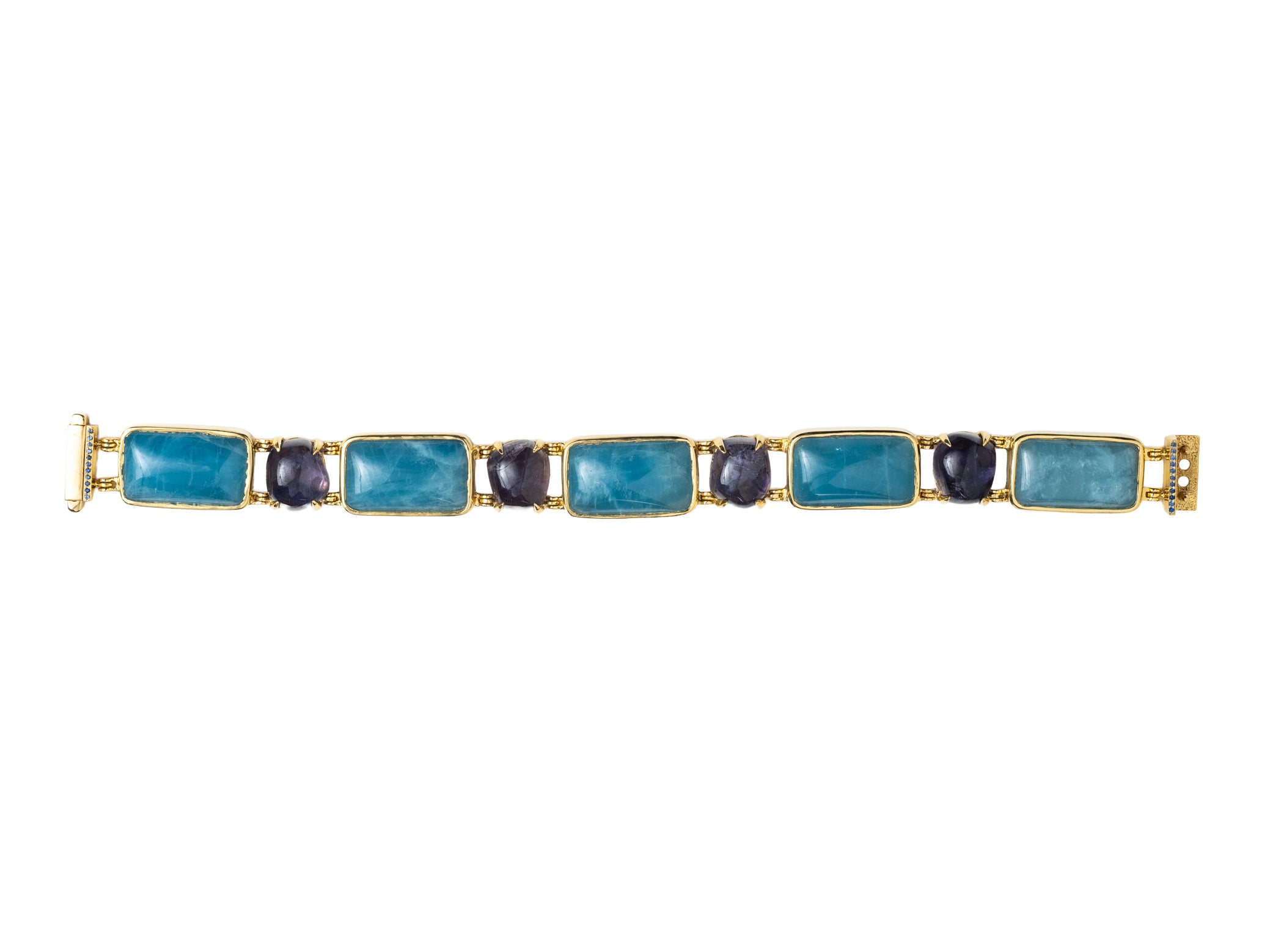 Deep blue aquamarine, iolite, blue sapphires, 18k yellow gold.